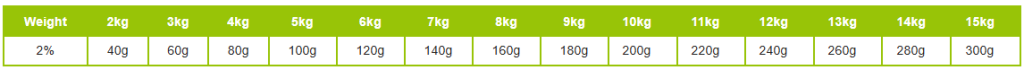 The below chart is what we recommend in terms of daily Healthy Pet Chefs food portions, along with a daily whole meat serving: