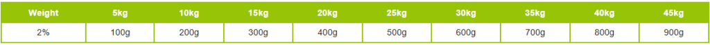 Generally healthy dogs should be fed 2-3% of their bodyweight, excluding puppies, older dogs, pregnant and lactating dogs. We recommend feeding your four legged friend 2% of their body weight daily, along with a daily meaty bone. We realise your dog may not weigh the equivalent to the portion sizes we have made. If you have excess you can freeze or store in the fridge for another day, make up the difference in meaty bones or contact us if you need us to tailor to your dog’s needs.